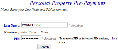 Click on Continue to Prepay Personal Property link at the top or bottom of this page. |