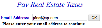Click on Continue to Pay Real Estate Taxes link at the top or bottom of this page. |