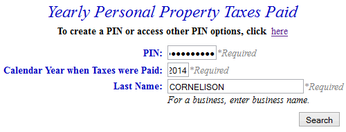| Click on Continue to Yearly Personal Property Taxes Paid link at the top or bottom of this page. |