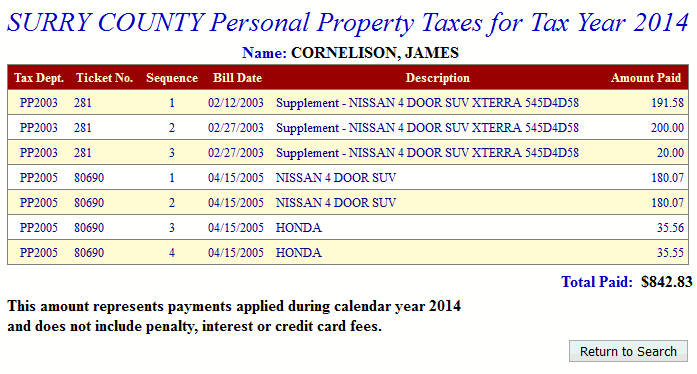 Surry County Treasurer's Yearly Personal Property Taxes Paid Help |